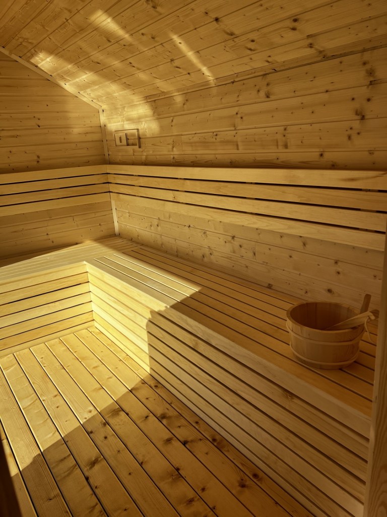 Badstuen har plass til maks 8 personer og passer både for hverdagsavkobling og sosiale sammenkomster.